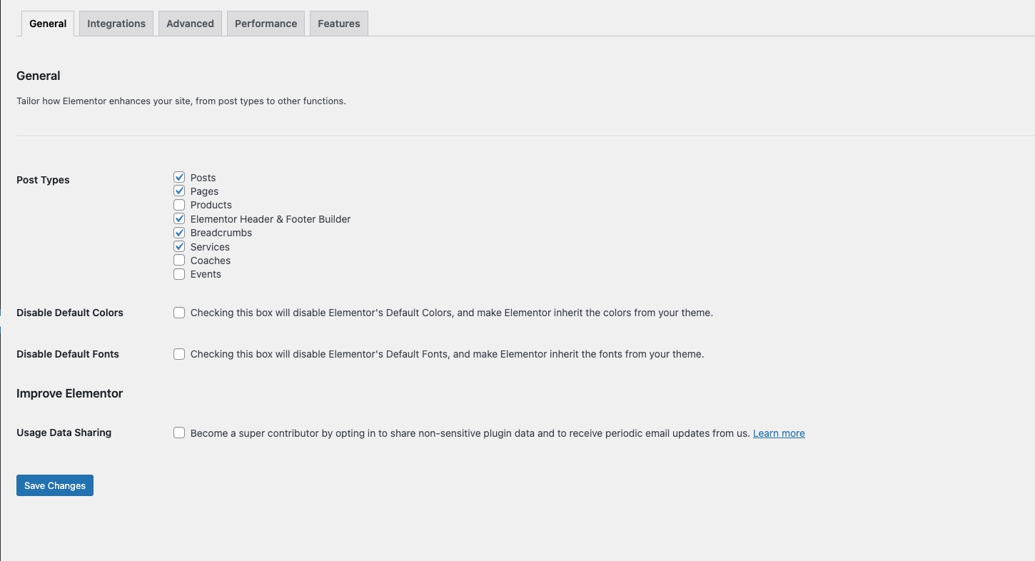 Elementor config