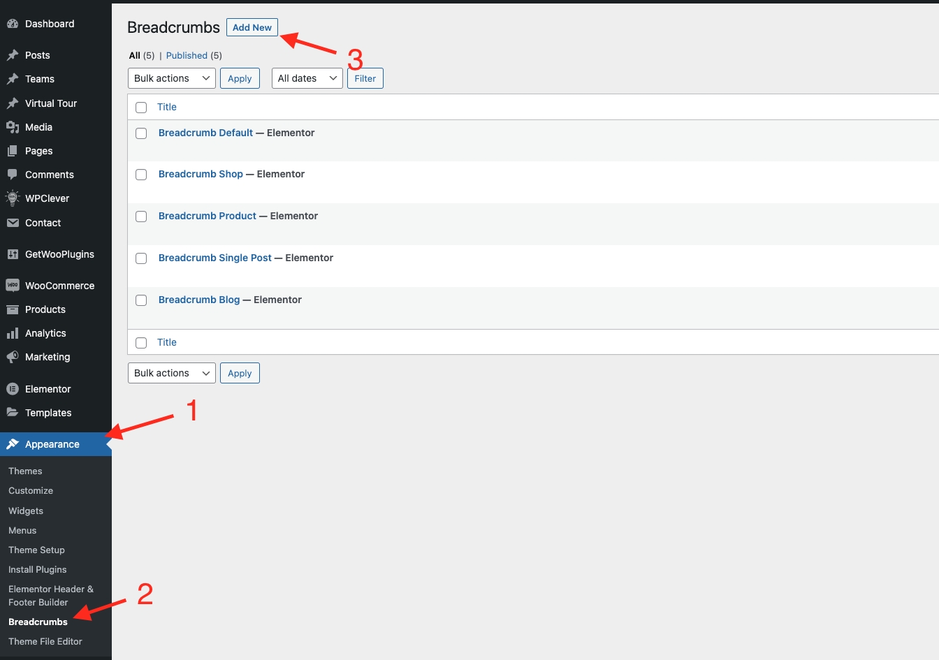 Step 1 - Go to WordPress Dashboard > Appearance > Breadcrumb > Add New