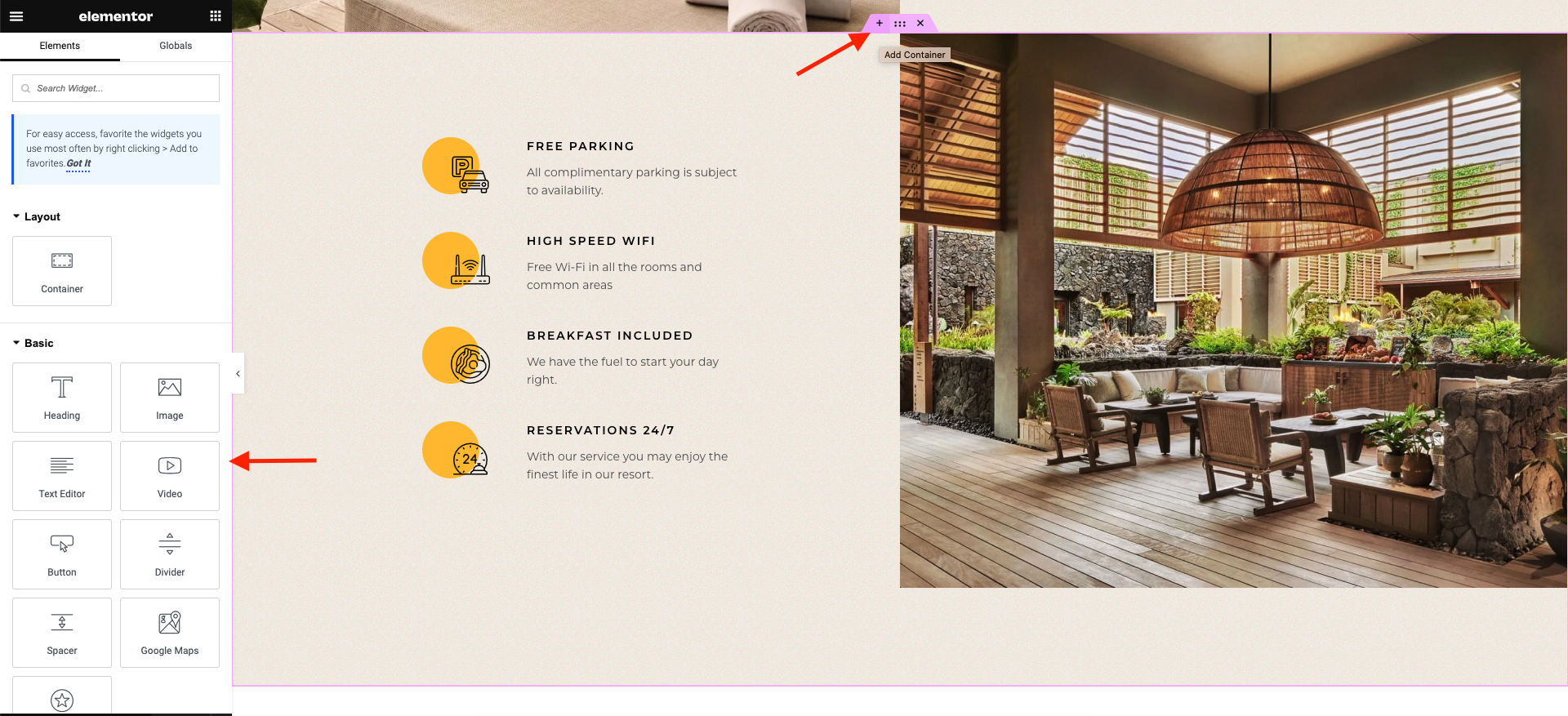 Step 3 - To change the Container layout you need to click the button content will display in the left sidebar.