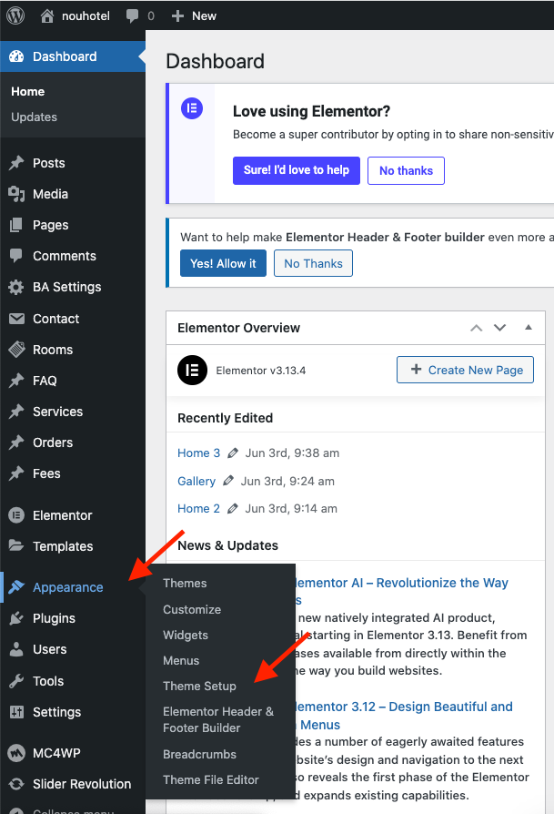 Step 2 - Click Appearance -> Theme Setup. This section will lead you to the steps to install the demo with One-click Import.