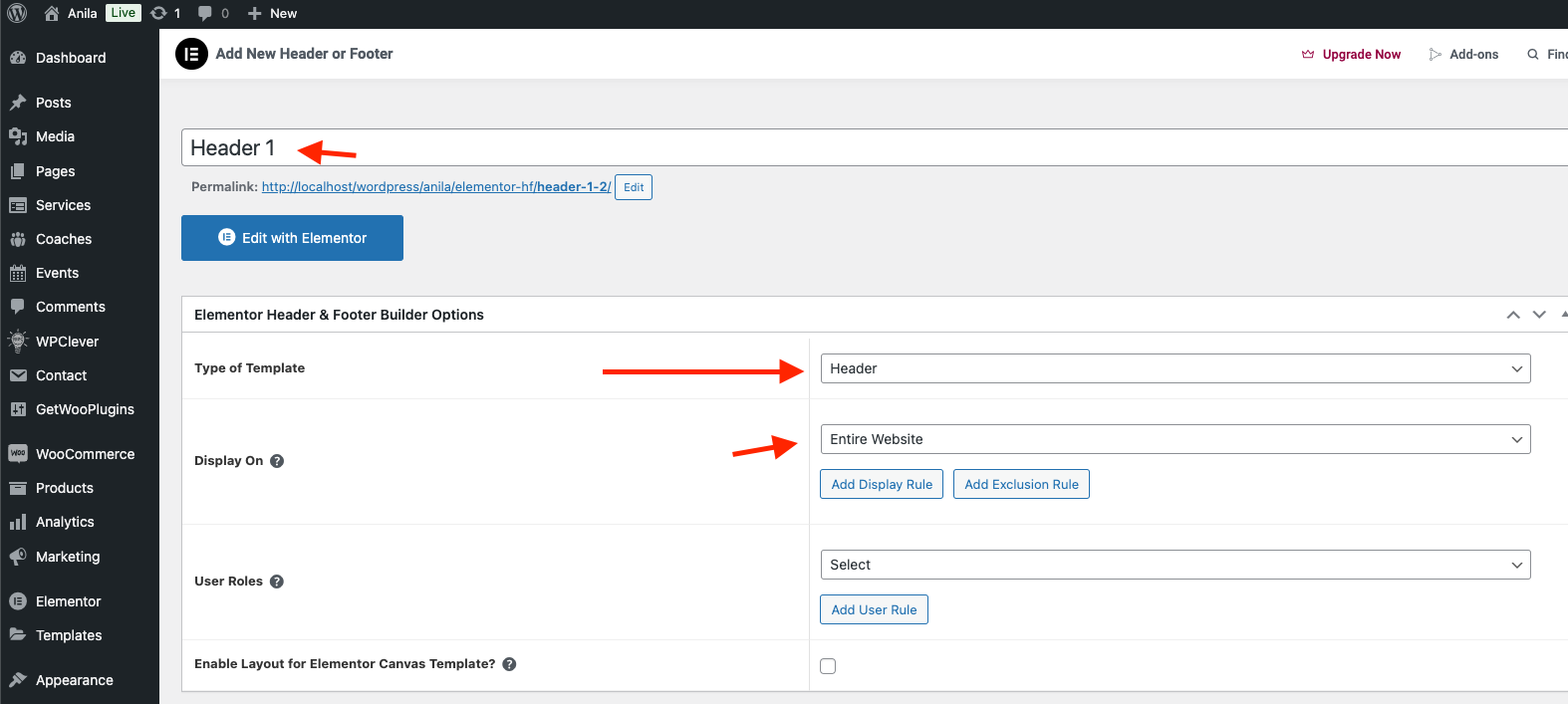 * Edit the display of your Header Footer & Blocks Template that can add the created template to the page.