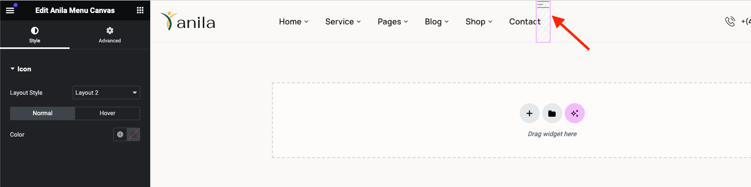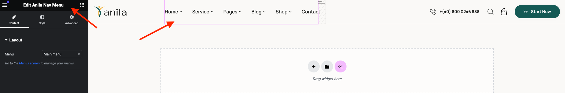 * You can add "**Bocpak** Nav Menu" widget and choose Main menu from dropdown list: