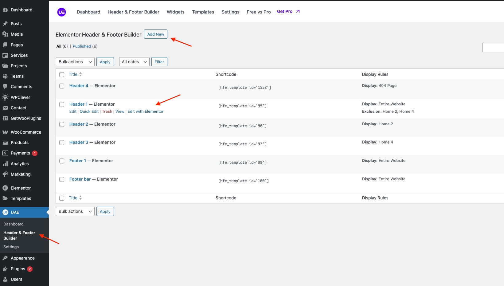 Step 1: Go to WordPress Dashboard > UAE > Header & Footer Builder > Add new