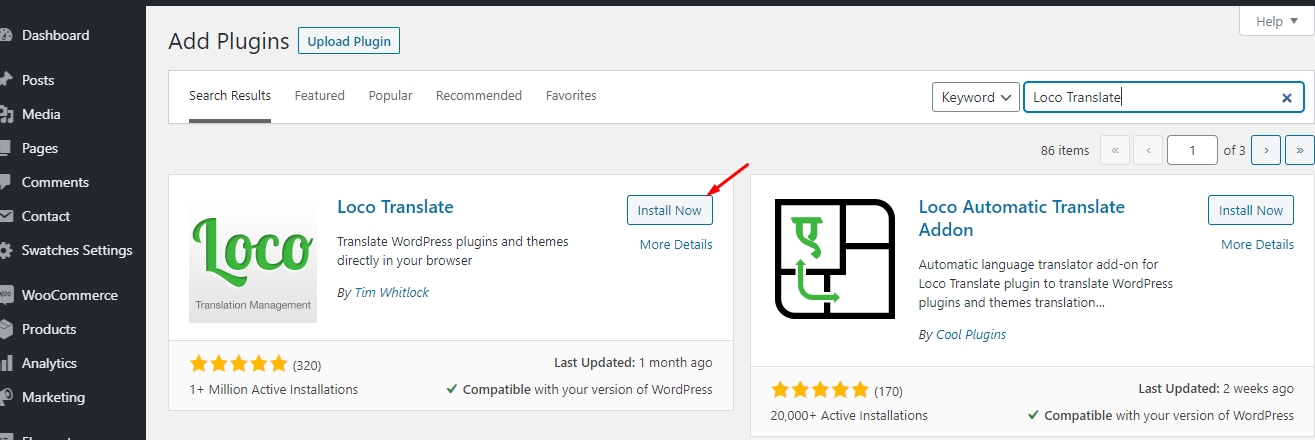 In order to install plugin, simply go to Plugins -> Add New and search for Loco Translate.