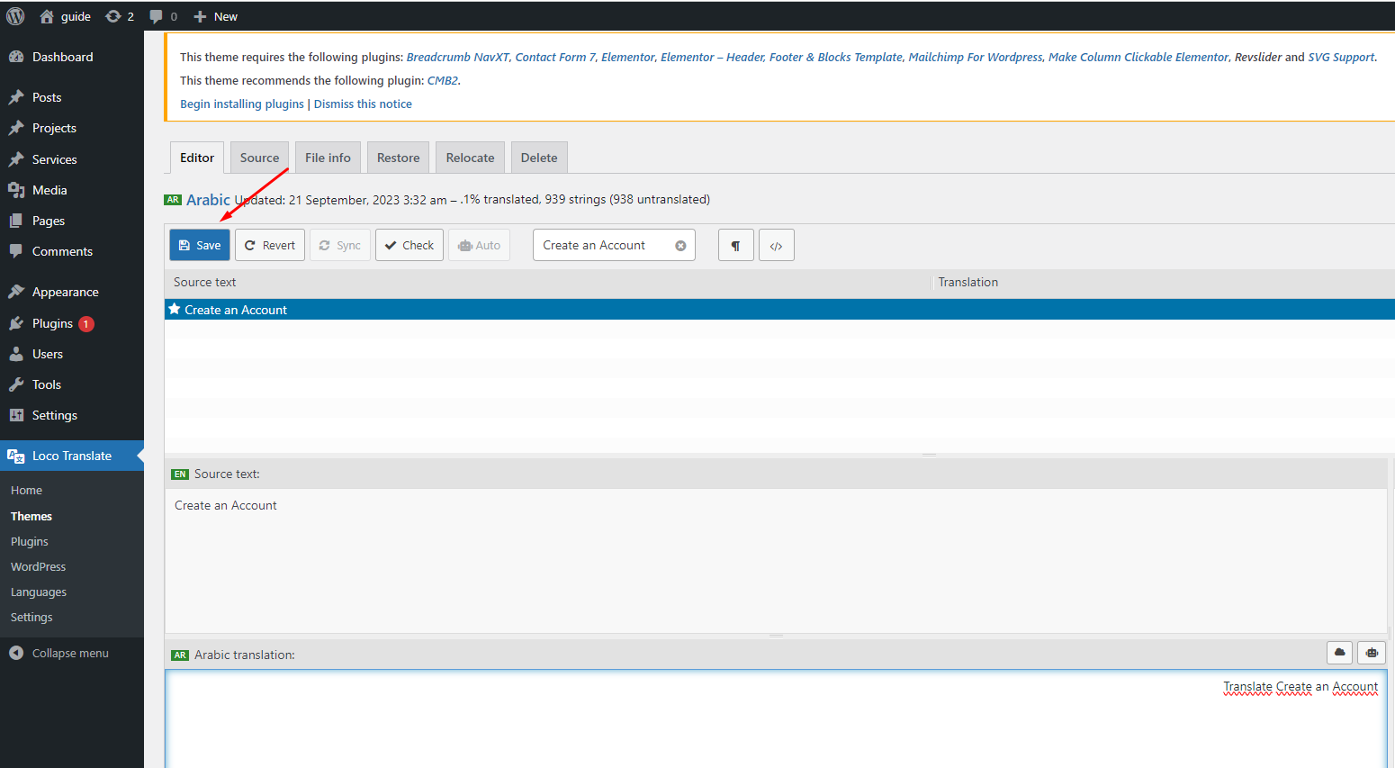 Now, you can enter the translation for word or phrase into Arabic section. If the language you wish to translate is not your own language, it is always safe to use Google Translate. Make sure to click Save to complete the translation.