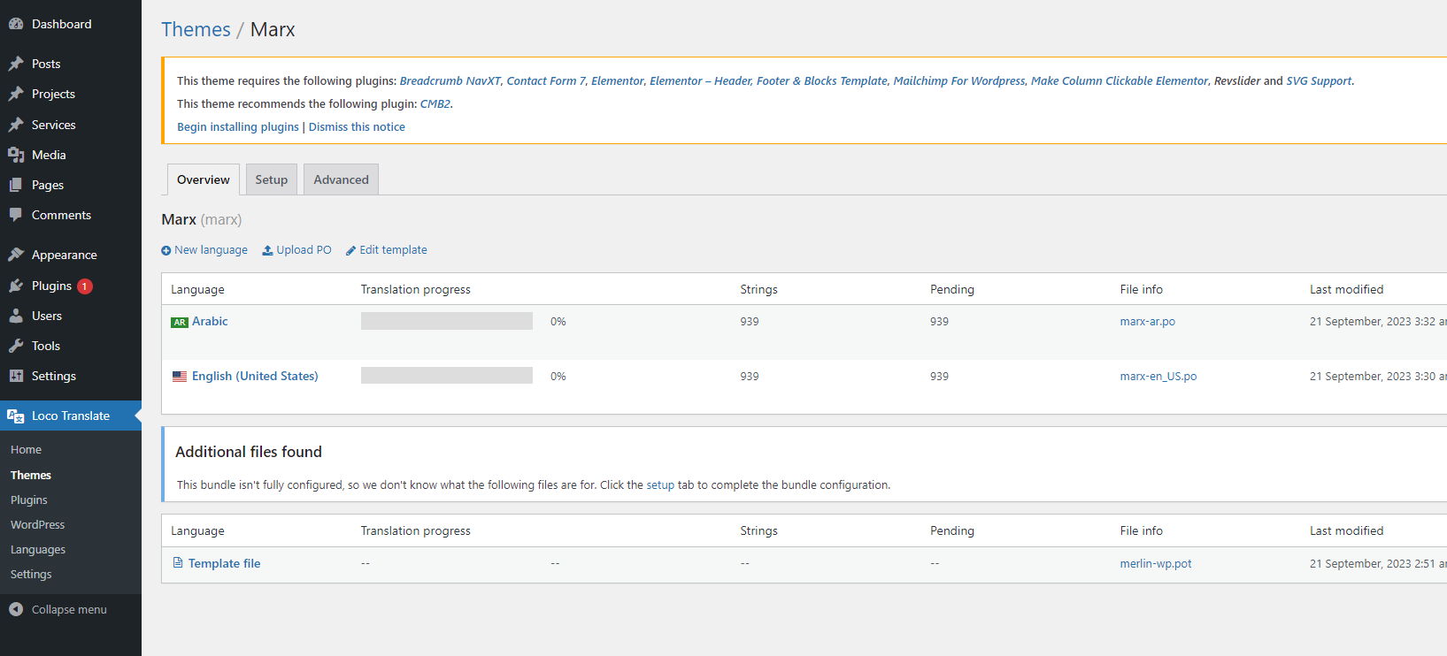 When you’re ready, go to Loco Translate -> Themes and you will see a list of all installed themes on your website.