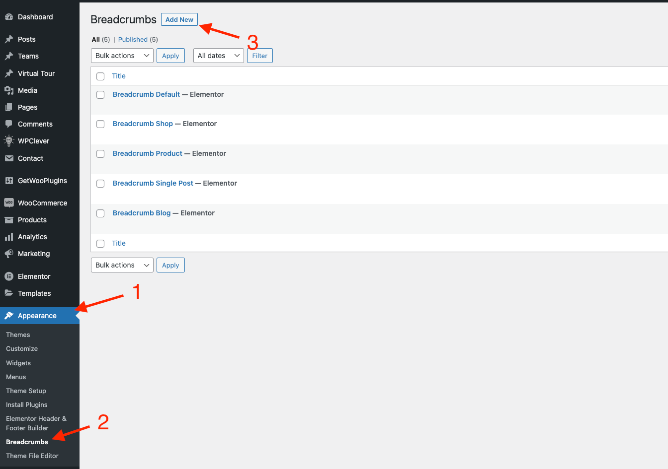 Step 1 Go to WordPress Dashboard > Appearance > Breadcrumb > Add New