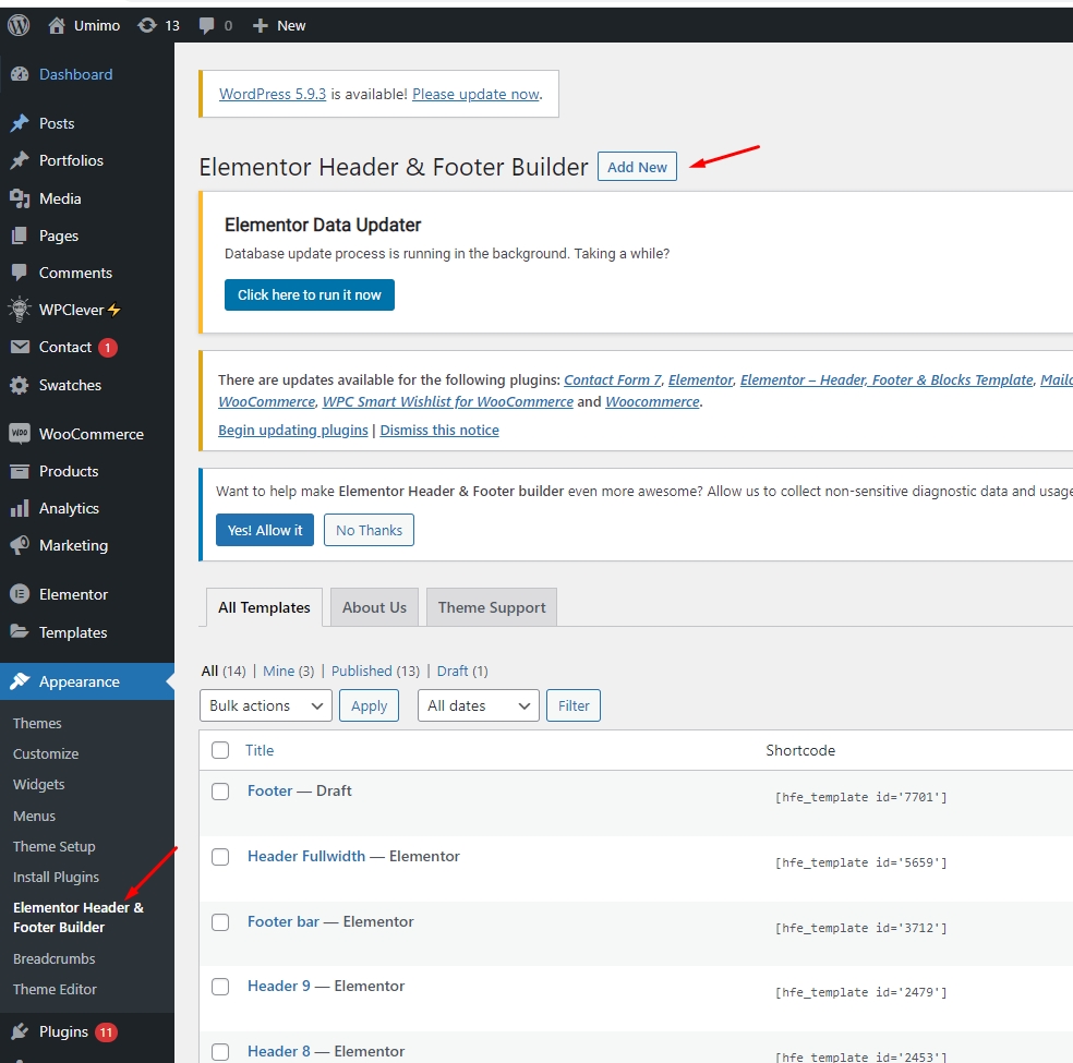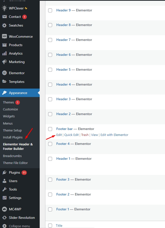 Step 1 - Go to WordPress Dashboard > Appearance > Header & Footer Builder > Add new > Edit with Elementor