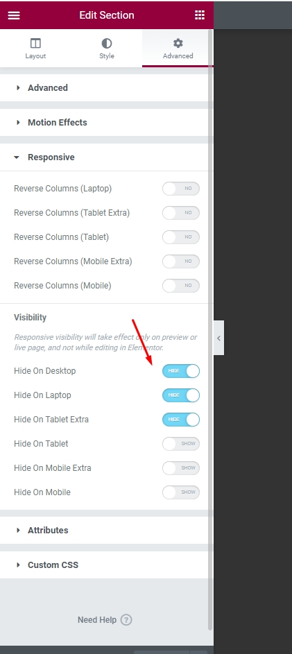 Step 5 - Hide Section on Desktop, Laptop and Tablet Extra