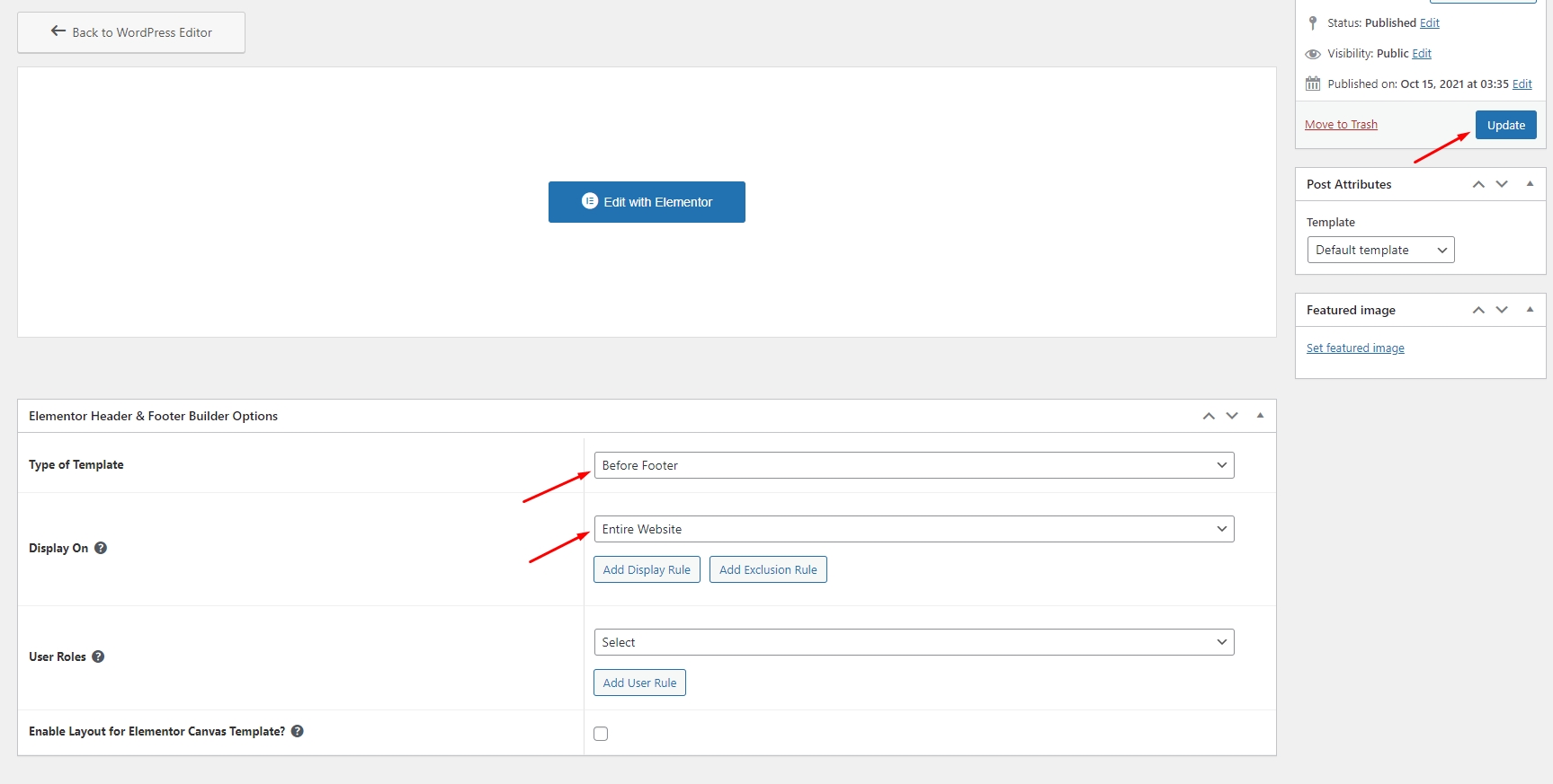 Step 7 - Edit the display of your Header Footer & Blocks Template that can add the created template to the page.