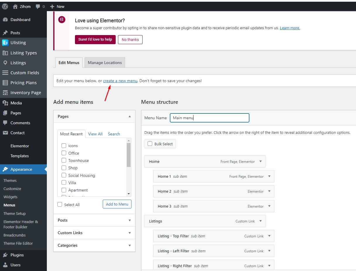 ​Step 1 - Navigate to manager Menu: Appearance > Menu.