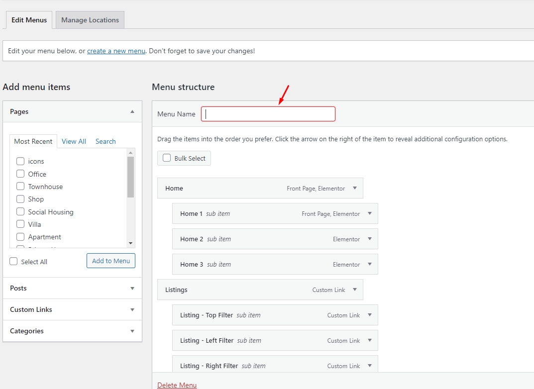 Step 4 - Enter a name for your new menu in the Menu Name box.