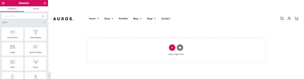 Step 2 - Using Elementor backend editor Auros then add element to your Header