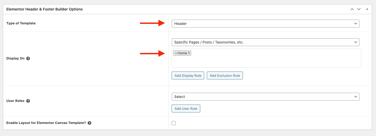 Step 11 - Set the conditions that determine where your Header is. For example, choose 'Entire Site' to display the header across your site.