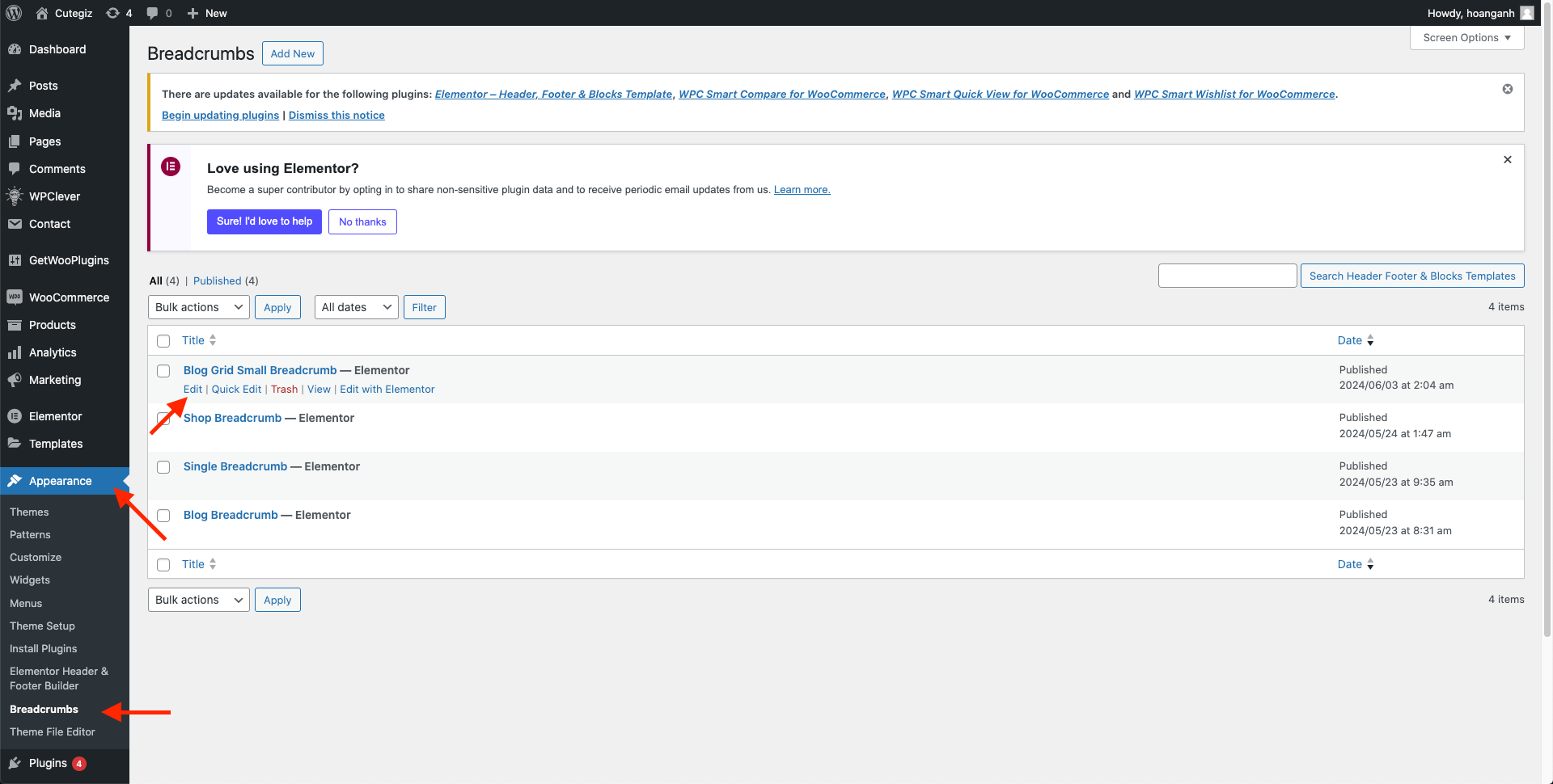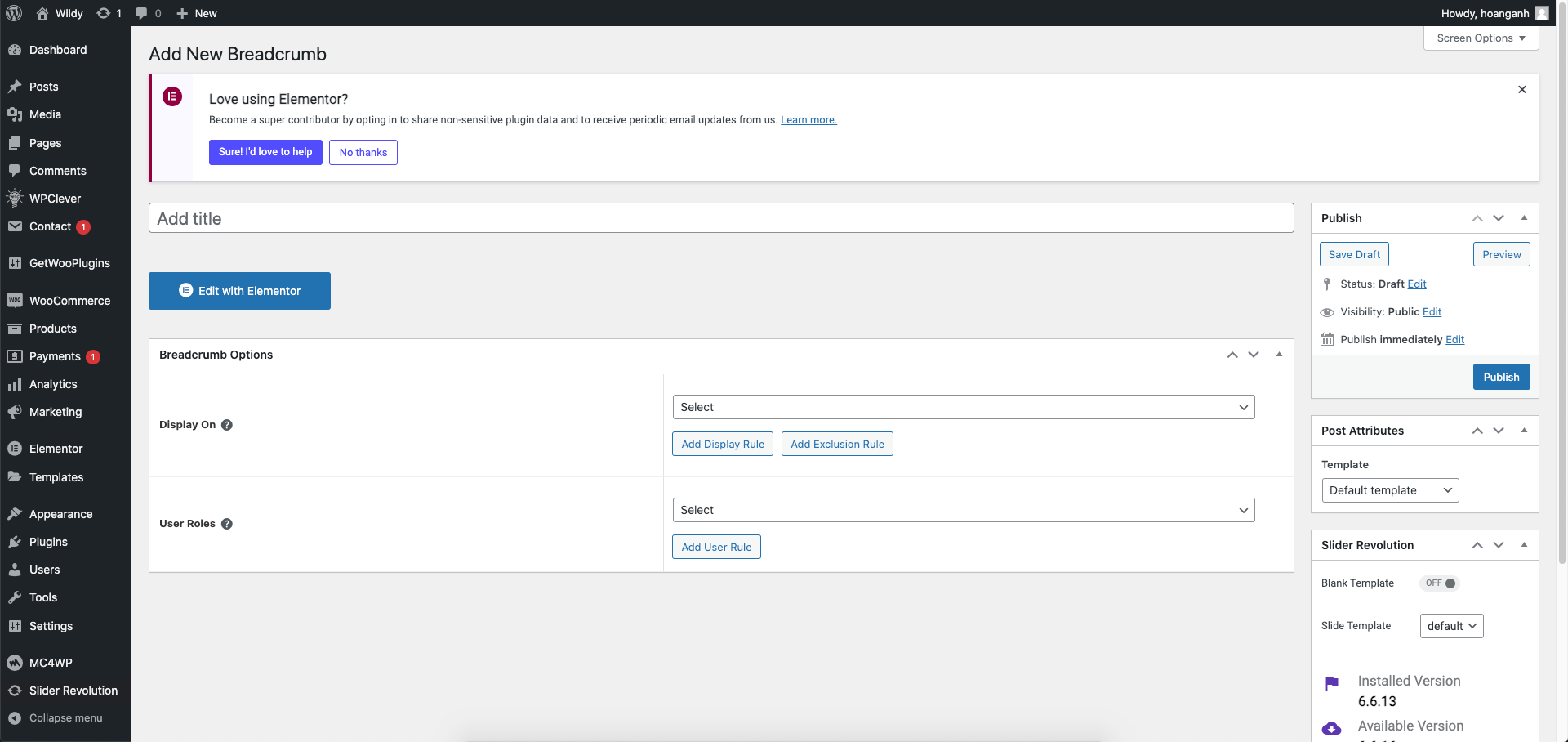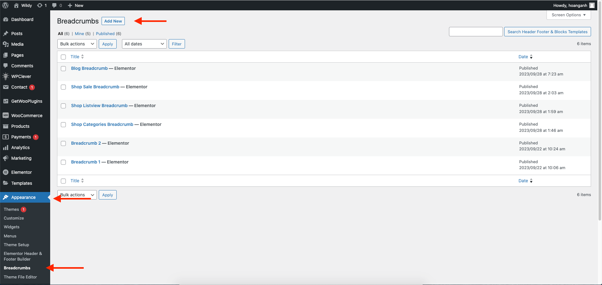 Step 1 - Go to WordPress Dashboard -> Appearance -> Breadcrumb -> Add New