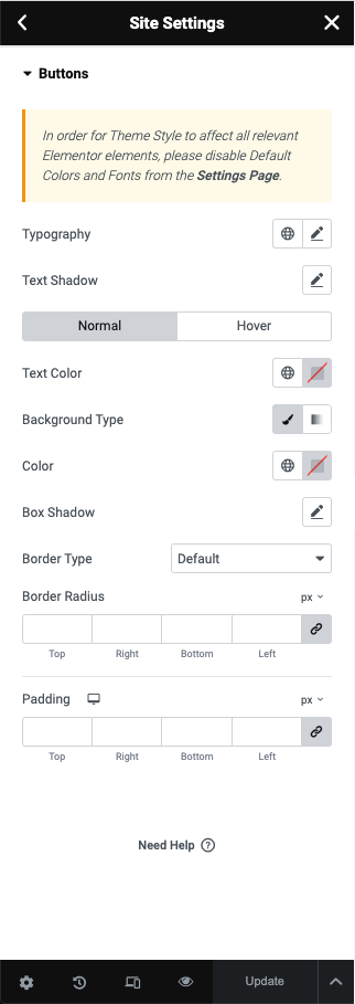 **Step 2** - Site Settings -> Button