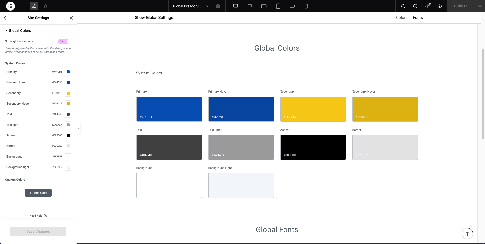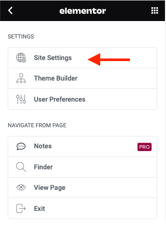 Step 1 - You can go to any Elementor edit page. In Settings, select Site Settings.