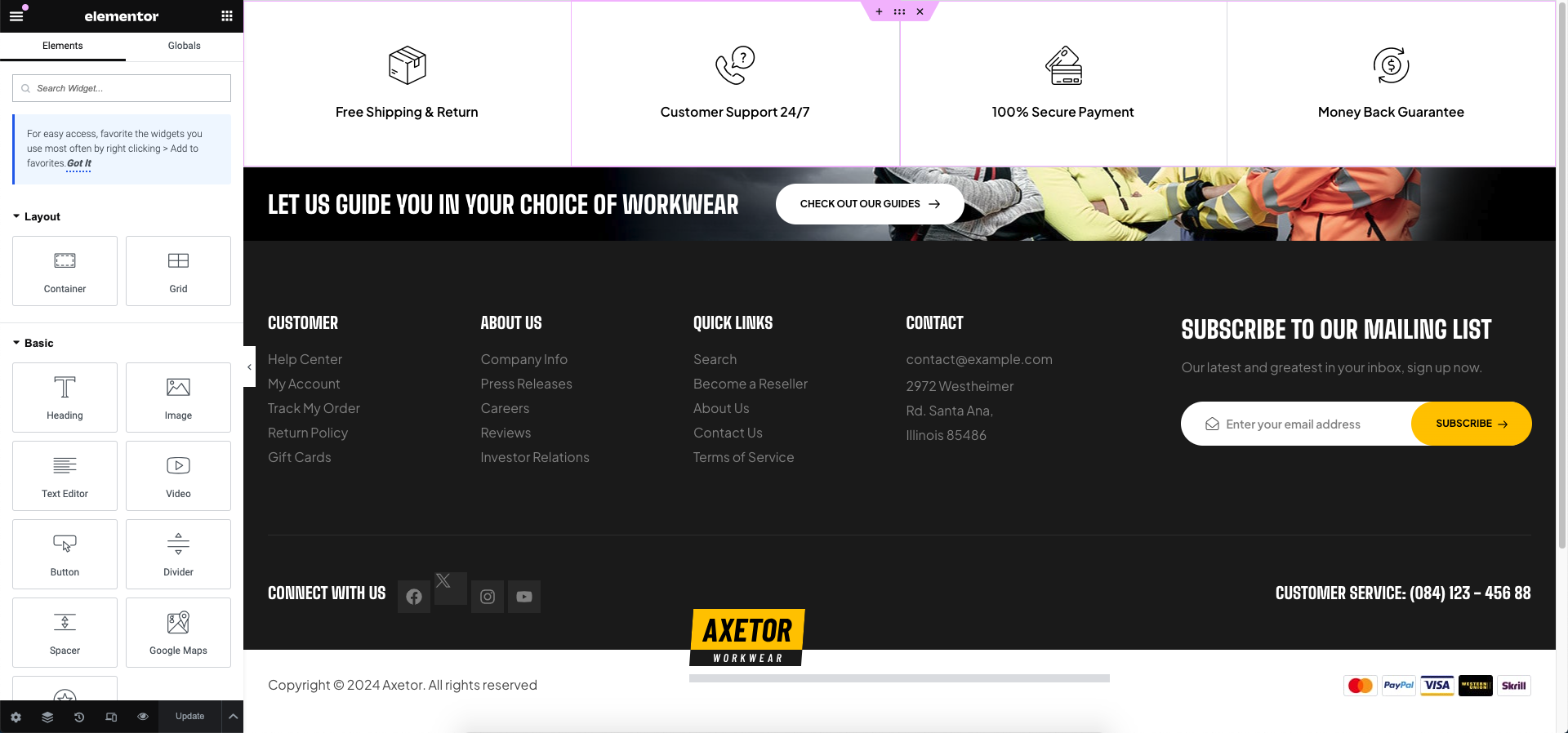 **Step 4** - Drag or drop the element that you want to build your footer template style with an unlimited layout.