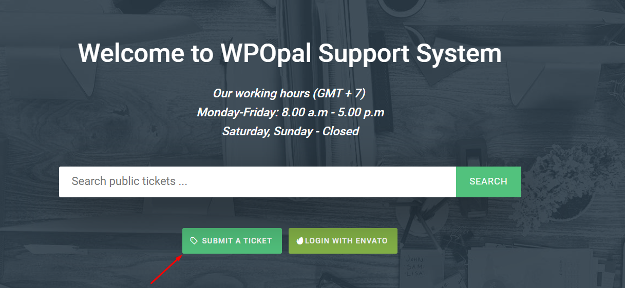 Step 2: Click to the button "Submit a ticket" to display the form submit. https://pavothemes.com/how-to-create-a-ticket-on-pavothemes/