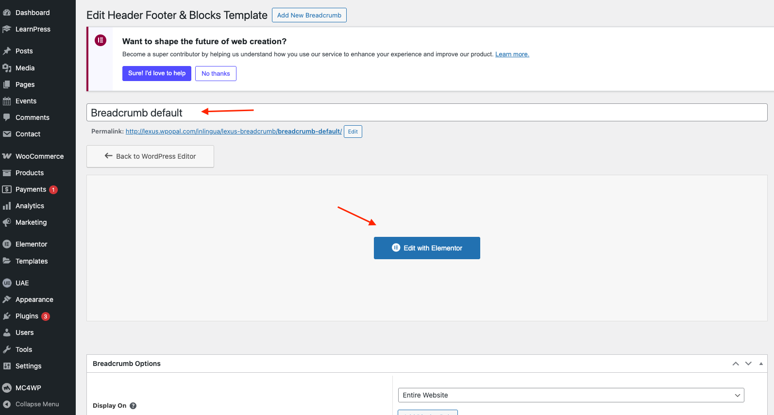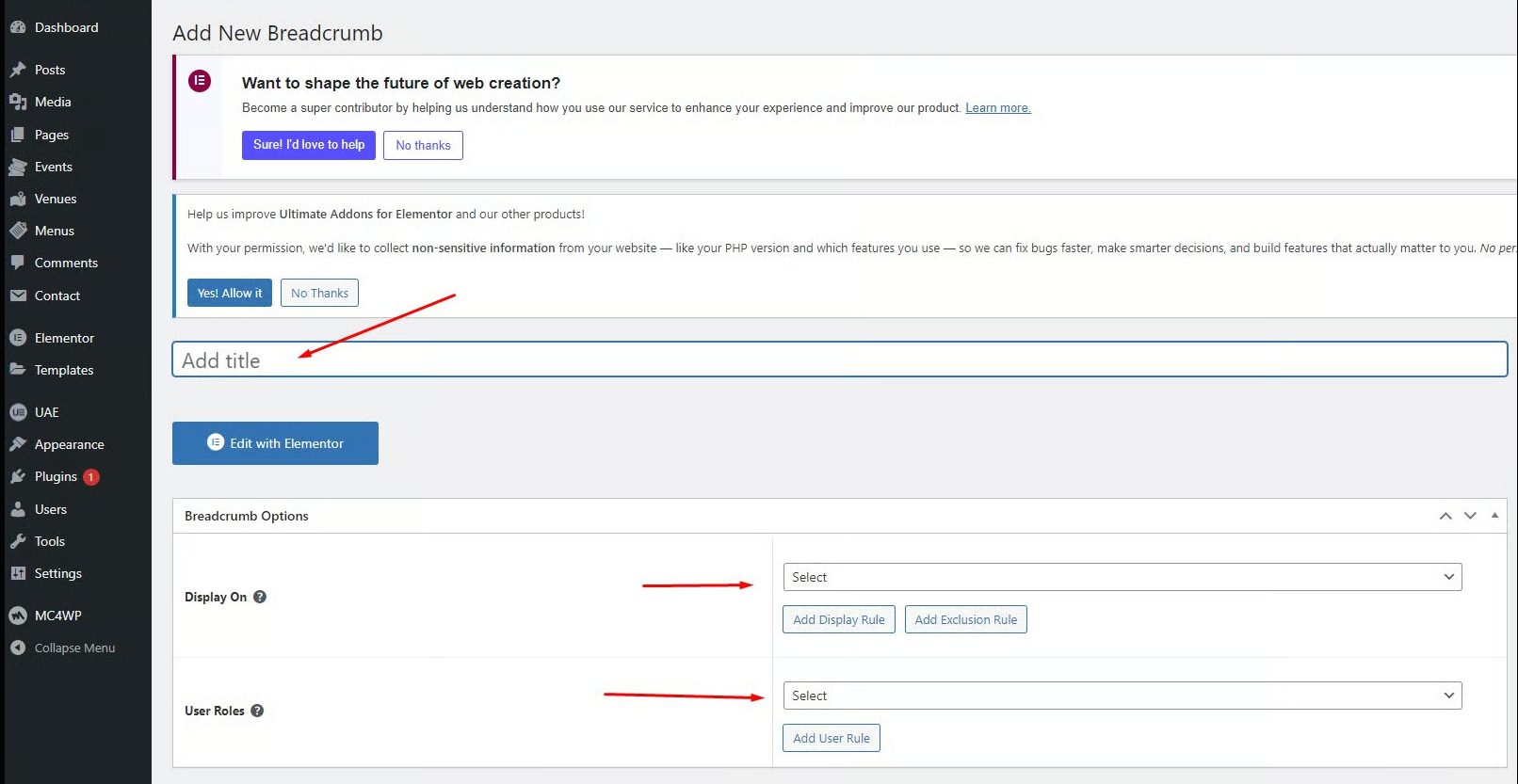 Step 1 Go to WordPress Dashboard > Appearance > Breadcrumb > Add New