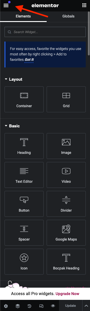 **Step 1** - you can go to any elementor edit page.