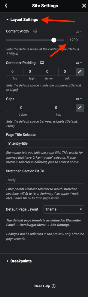 **Step 2** - Site Settings >> Layout >>