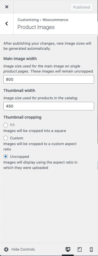 Image size used for the main image on single product pages. These images will remain uncropped.