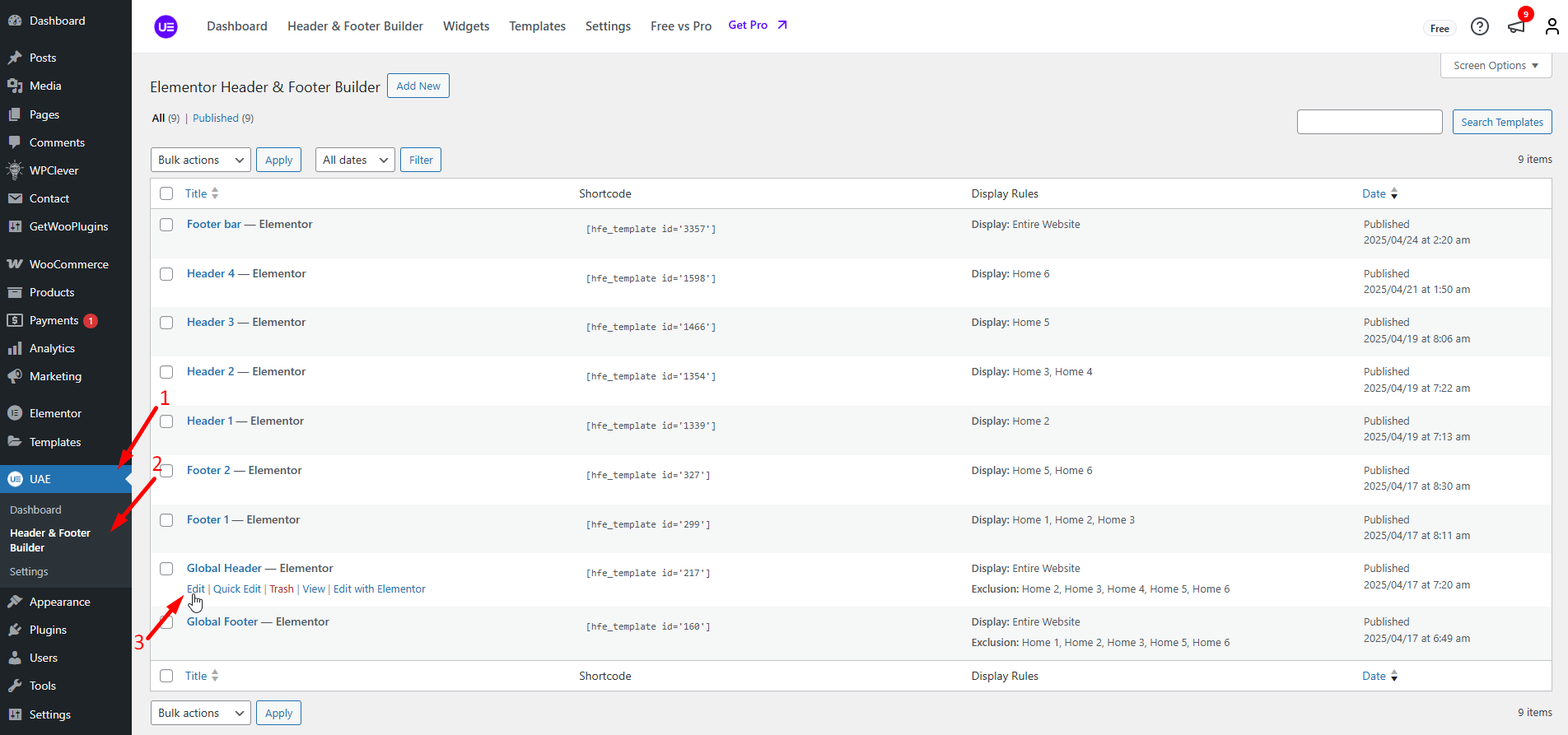 Step 1 - Go to UAE > Header & Footer Builder > Add new.