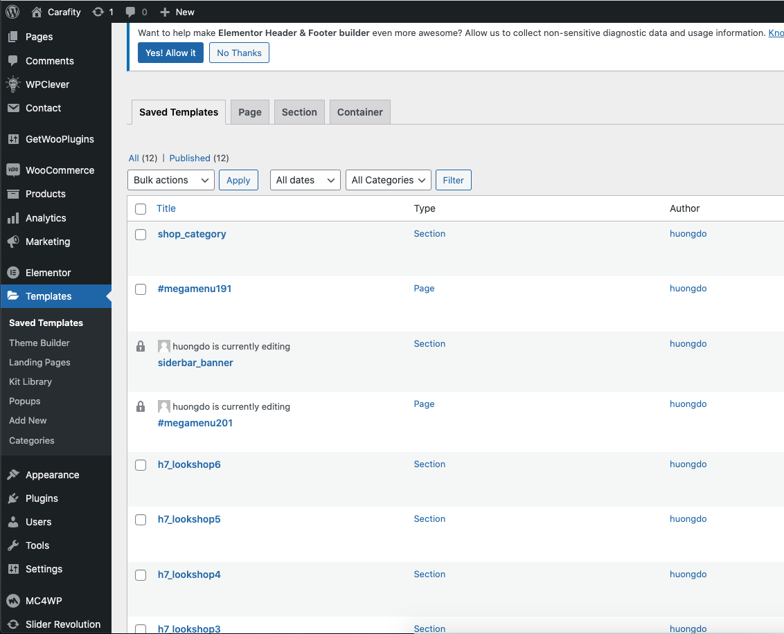 Step 1 - From the admin Dashboard, navigate to Templates.