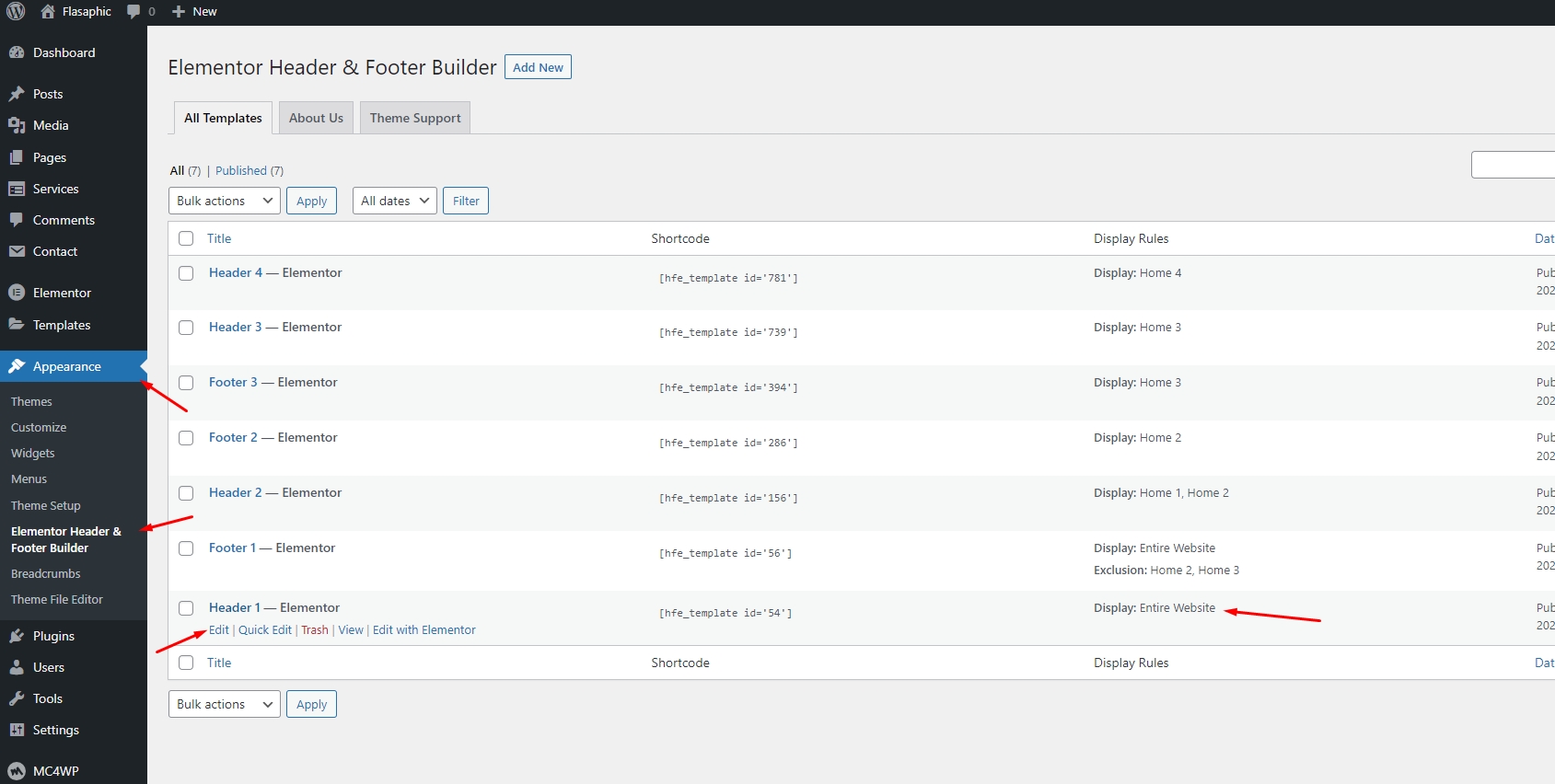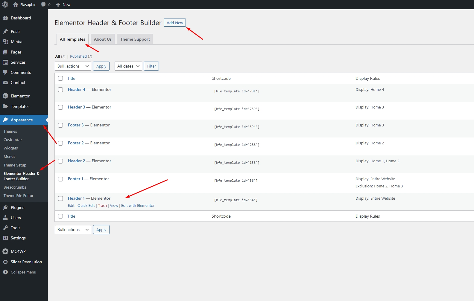 Step 1 - Go to WordPress Dashboard > Appearance > Header & Footer Builder > Add new > Edit with Elementor