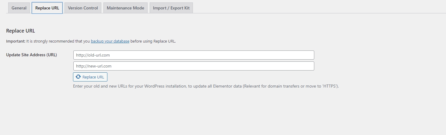 Step 5 - Editor Replace URL tab: display config for site address....