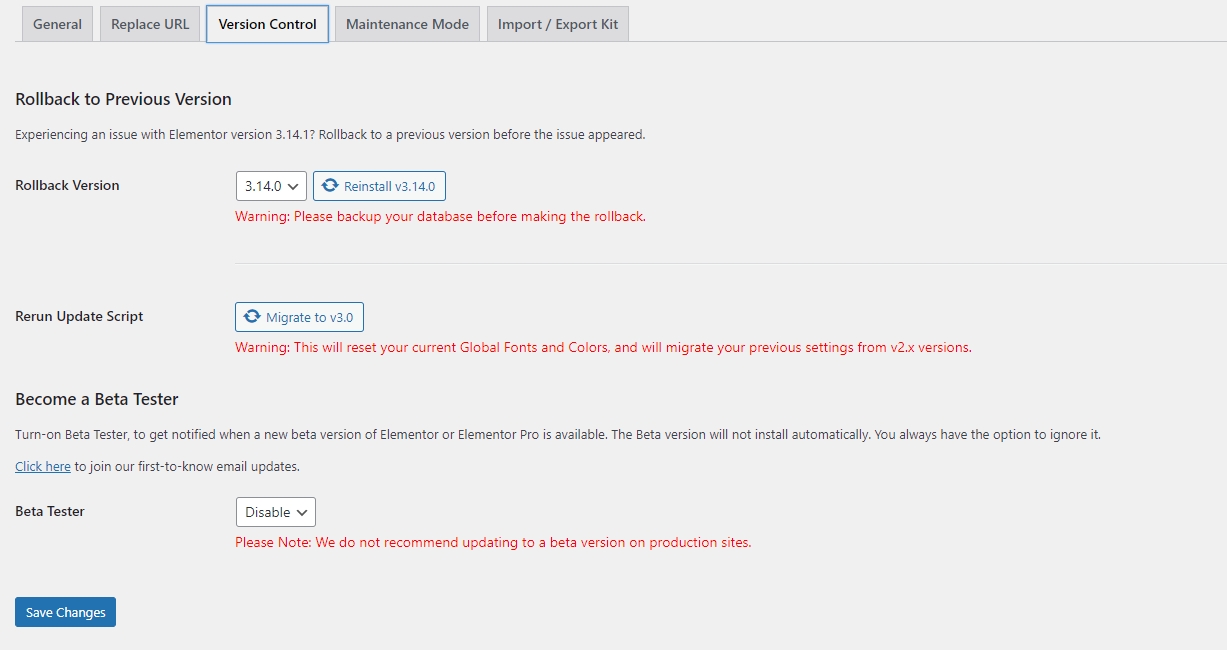 Step 6 - Version control: display config for elementor.