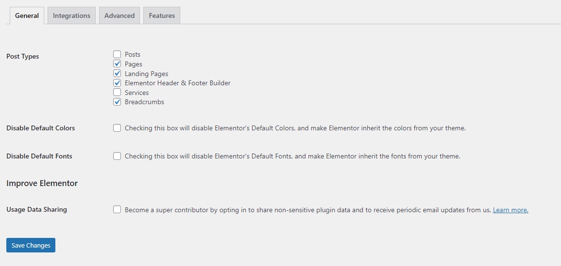 Step 4 - You will see all tabs for setting of elementor , in General tab