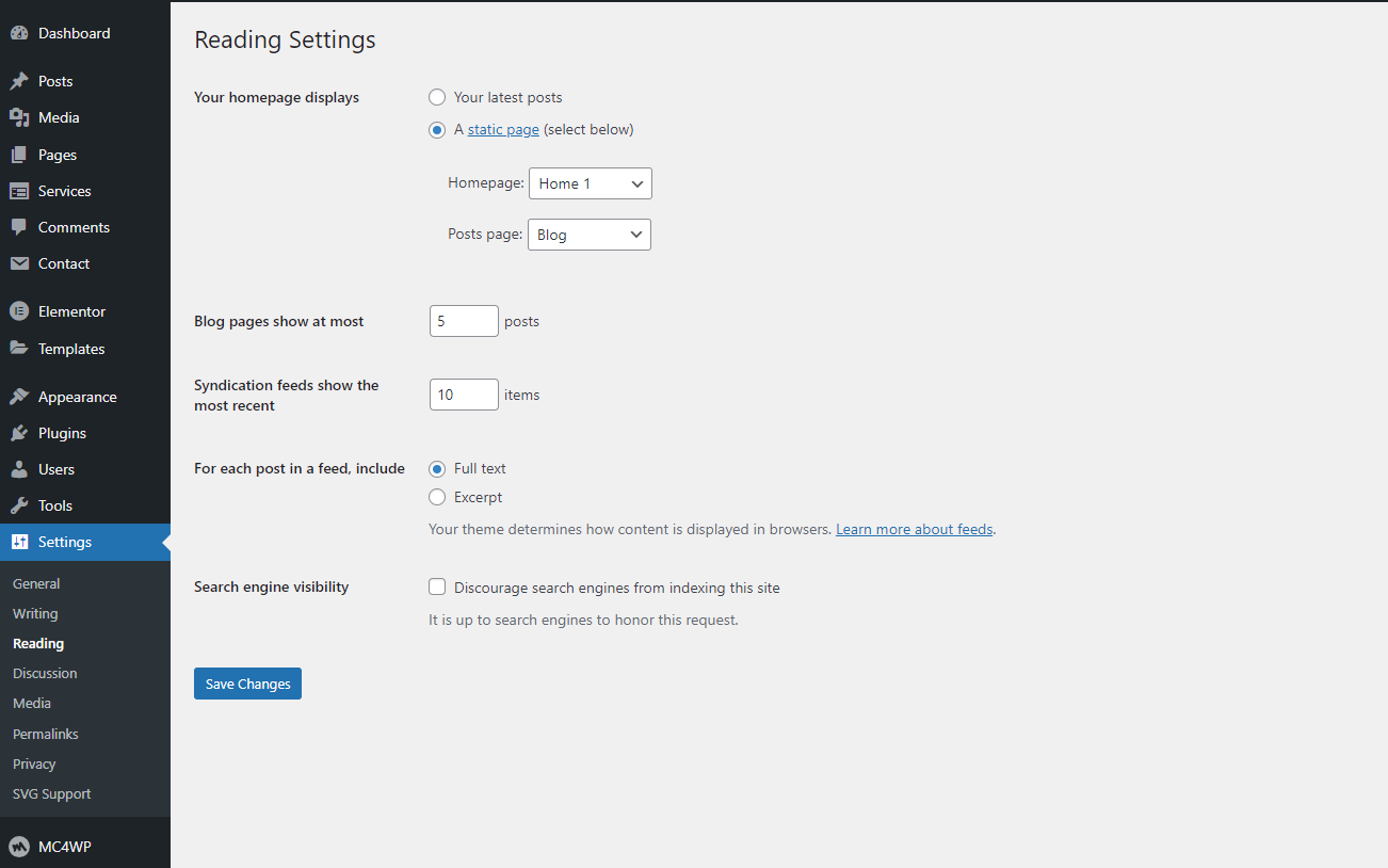 Step 1 - Go to Settings > Reading in your WordPress Dashboard panel.