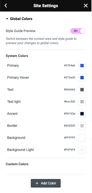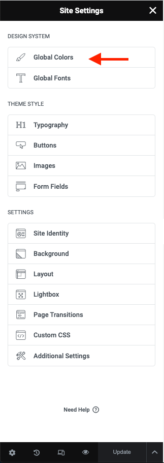 Step 2 - Site Settings -> Global Colors