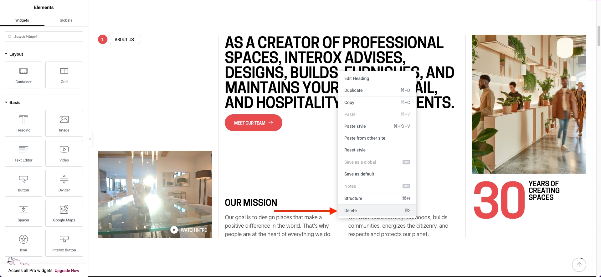 b. Remove Element: To remove a Container or Module you need to right-click and click delete.