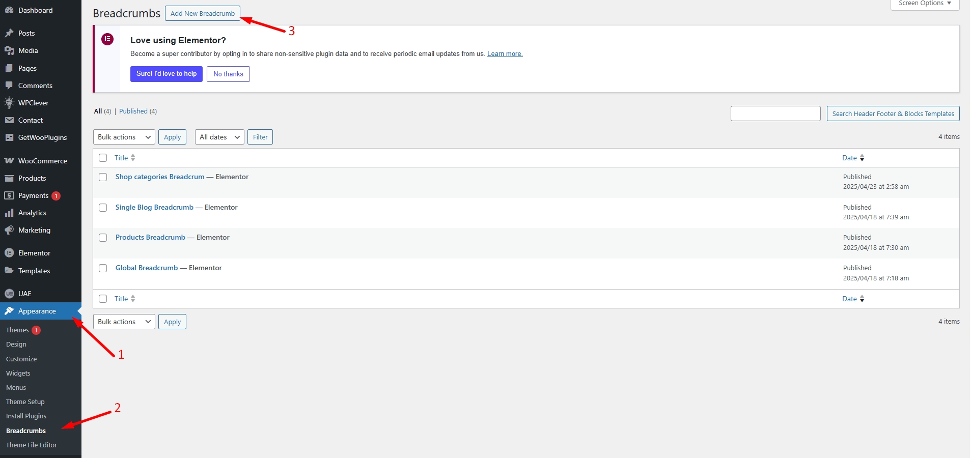 Step 1 - Go to WordPress Dashboard > Appearance > Breadcrumb > Add New