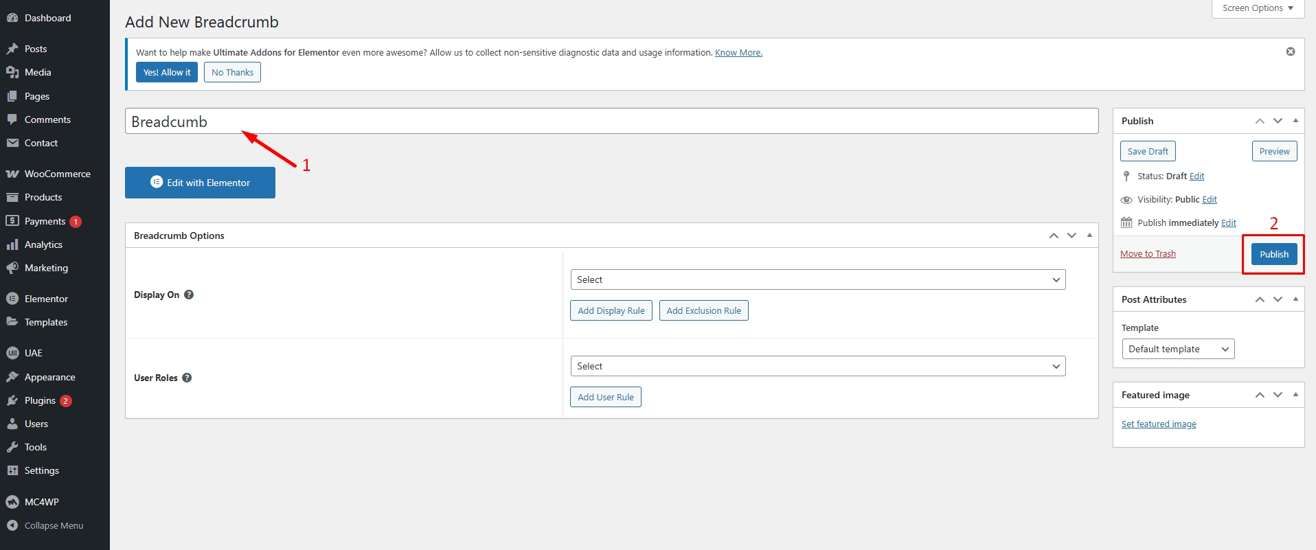 Step 2 - Click 'Add New' and Name your Breadcrumb template, then click 'Publish'.