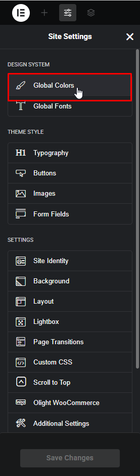 Step 2 - Site Settings -> Global Colors