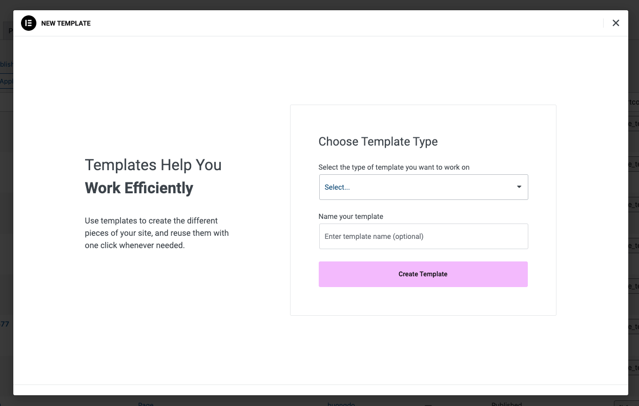 Step 2 - Click on the "Add New" popup to create a new template for display. Please enter the name, select the type of your template and then click "Create Template."