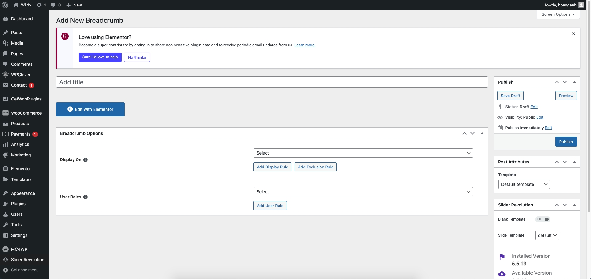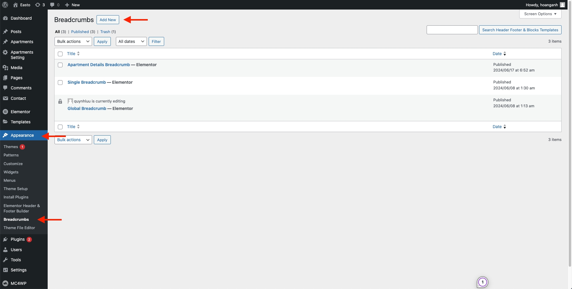 Step 1 - Go to WordPress Dashboard > Appearance > Breadcrumb > Add New