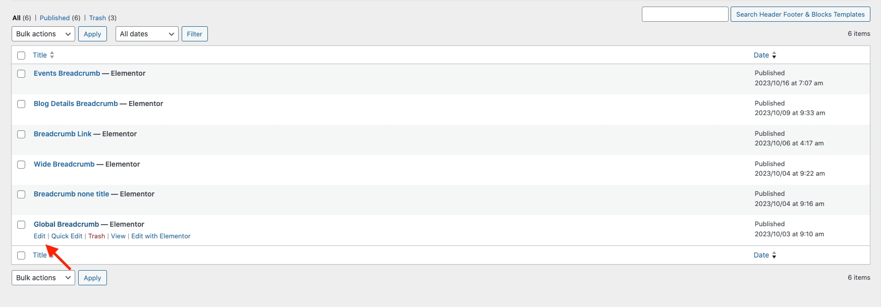 Step 2 - Click ‘Add New ’ and Name your Breadcrumb template and click 'Publish'.