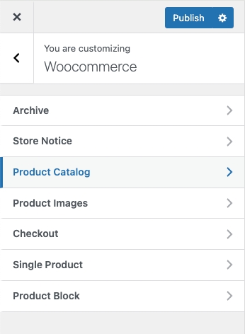 The WooCommerce Customizer allows you to set the general configuration of your product catalog.
