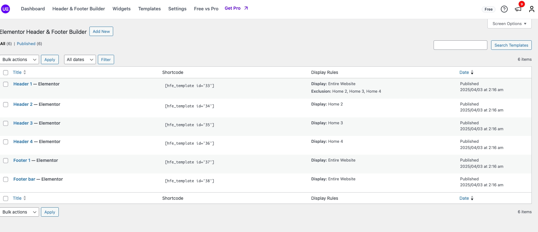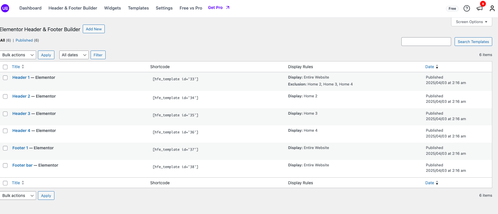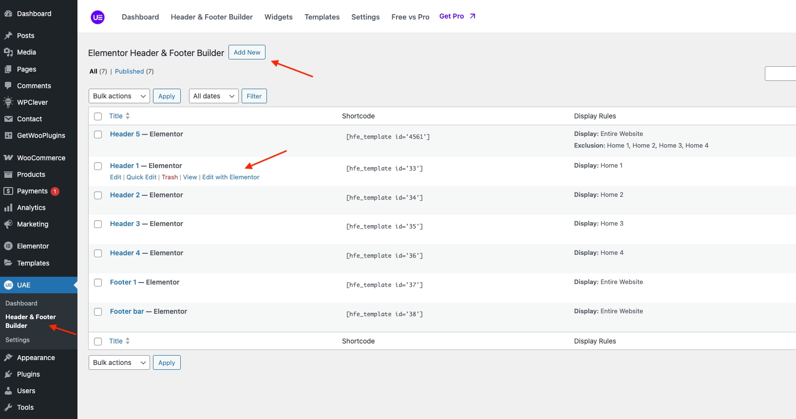 Step 1: Go to WordPress Dashboard > UAE > Header & Footer Builder > Add new