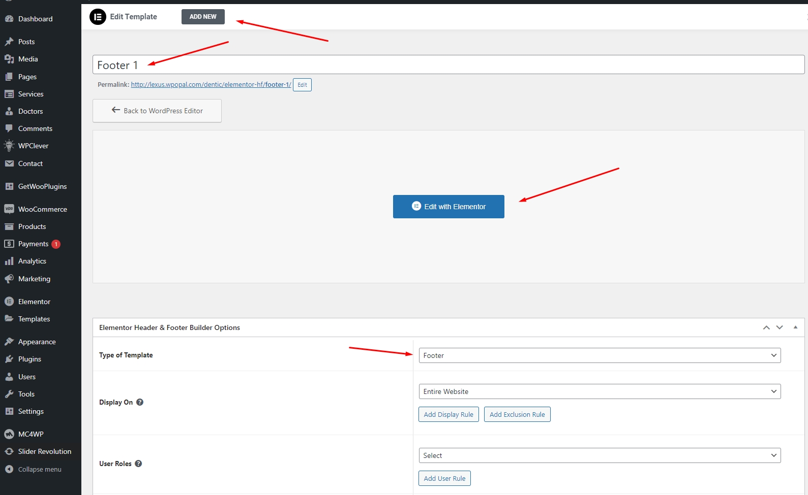Go to WordPress Dashboard > UAE > Header & Footer Builder > Add new