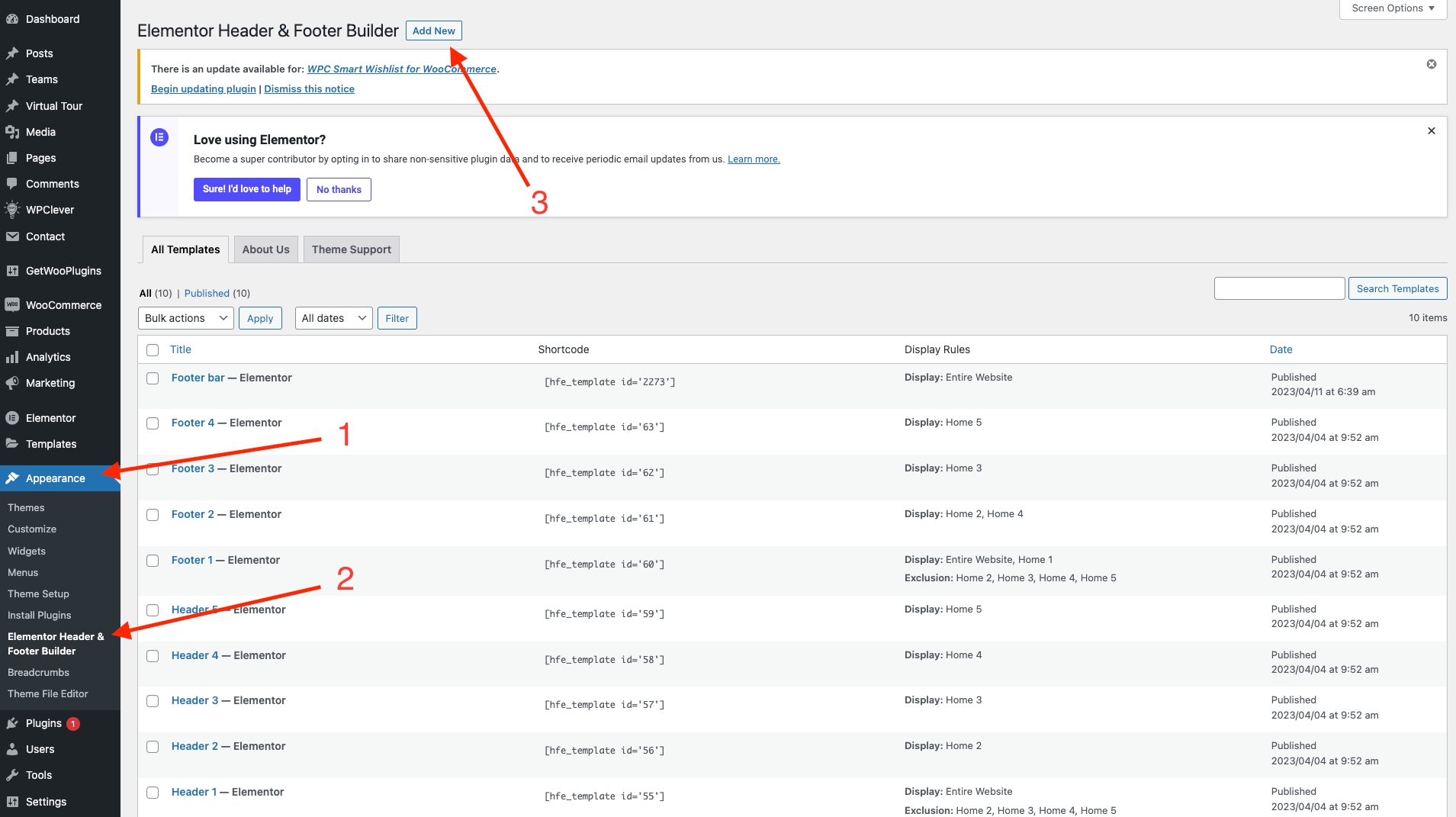 Step 1: Go to WordPress Dashboard > Appearance > Header & Footer Builder > Add new > Edit with Elementor
