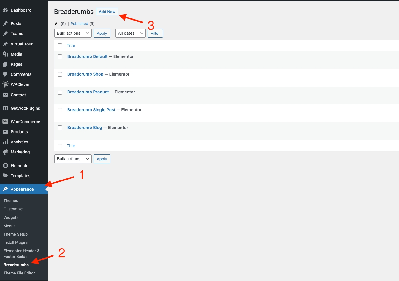 Step 1 Go to WordPress Dashboard > Appearance > Breadcrumb > Add New