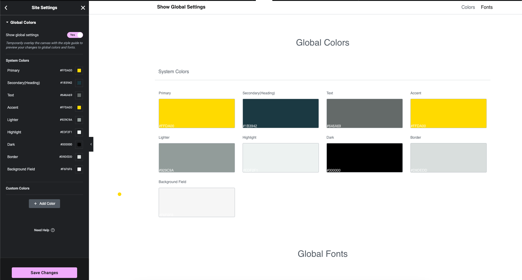 **Step 2** - Site Settings >> Global Colors >>