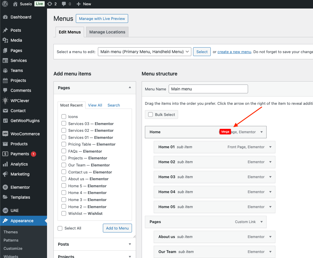 Step 5 - Click Edit Megamenu Submenu then a new window will appear. You can build a Mega menu by Elementor. After finishing click Update and click.