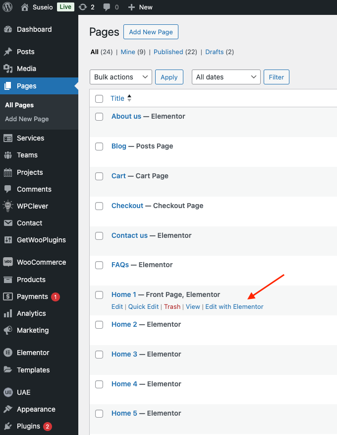 Step 1 - Go to your page / post, first activate the backend editor and click Edit with Elementor.